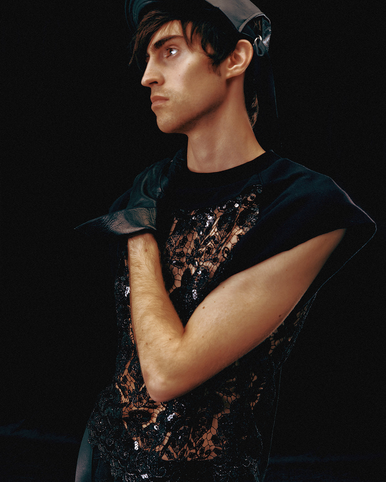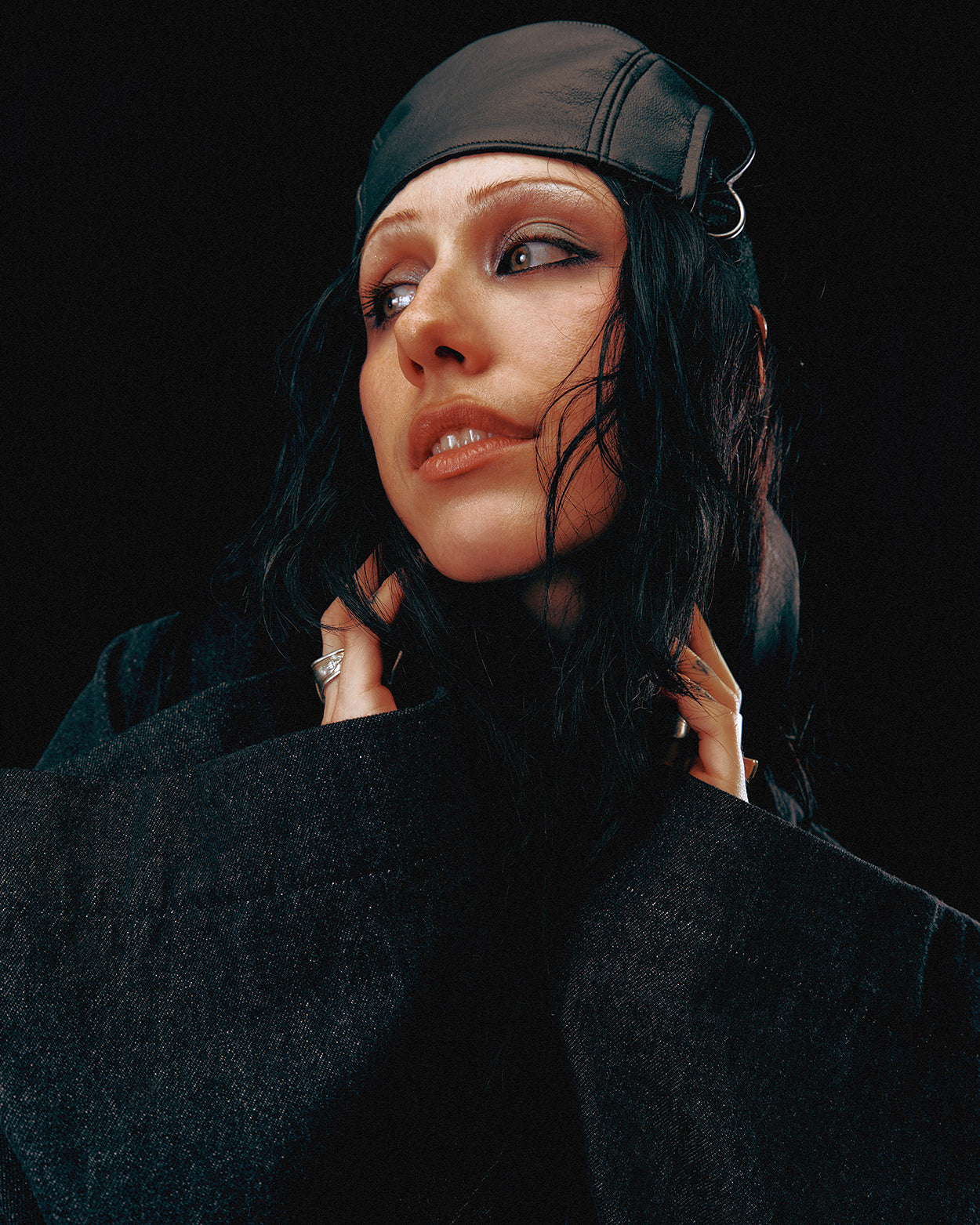 Black panel cap with side adjustments on both sides and topstitched mini visor. Entièrement surcyclé.